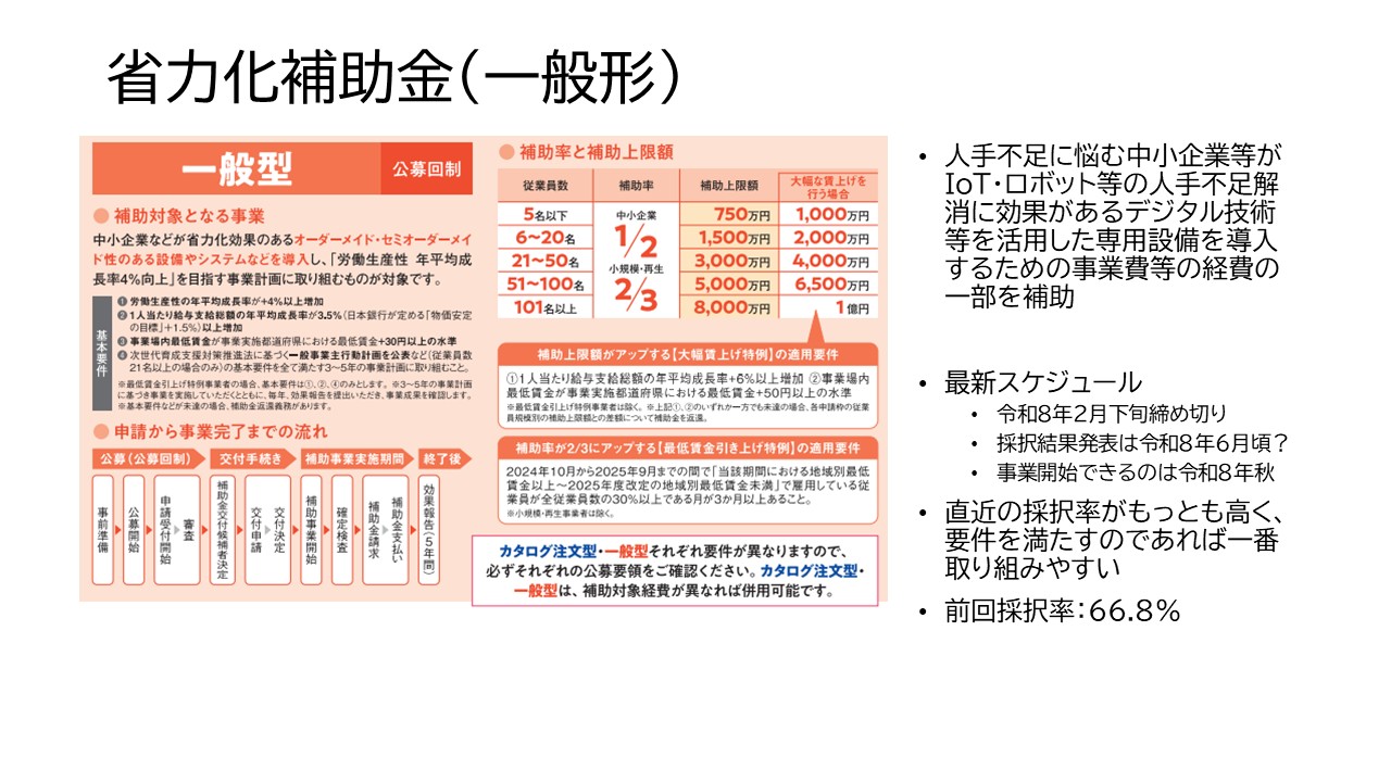 人の手を減らすことが主目的であれば、省力化補助金が最も制度趣旨に合致します。
